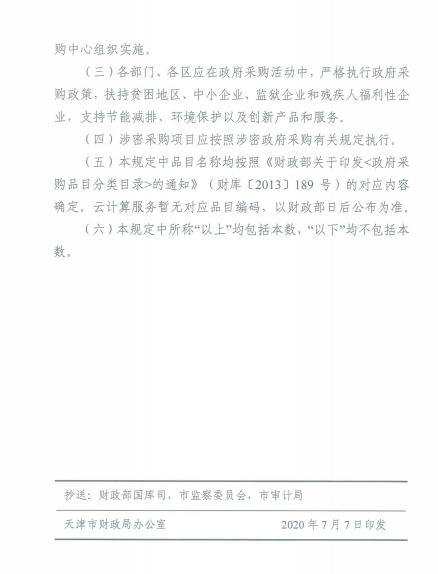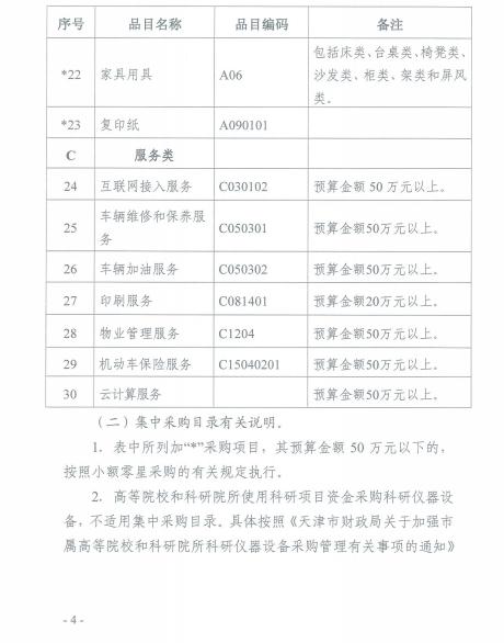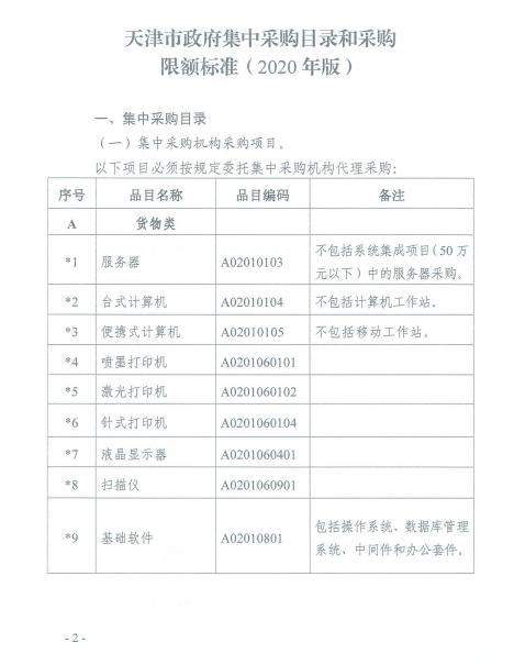 天津市2020年政府集中采购目录和采购限额标准