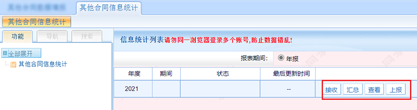 第四步,下级单位上报数据后,监管单位在其他合同信息统计页面接受汇总报表。