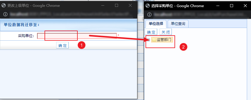 然后,在弹出的采购单位选择页面,为下级单位选择新的上级。
